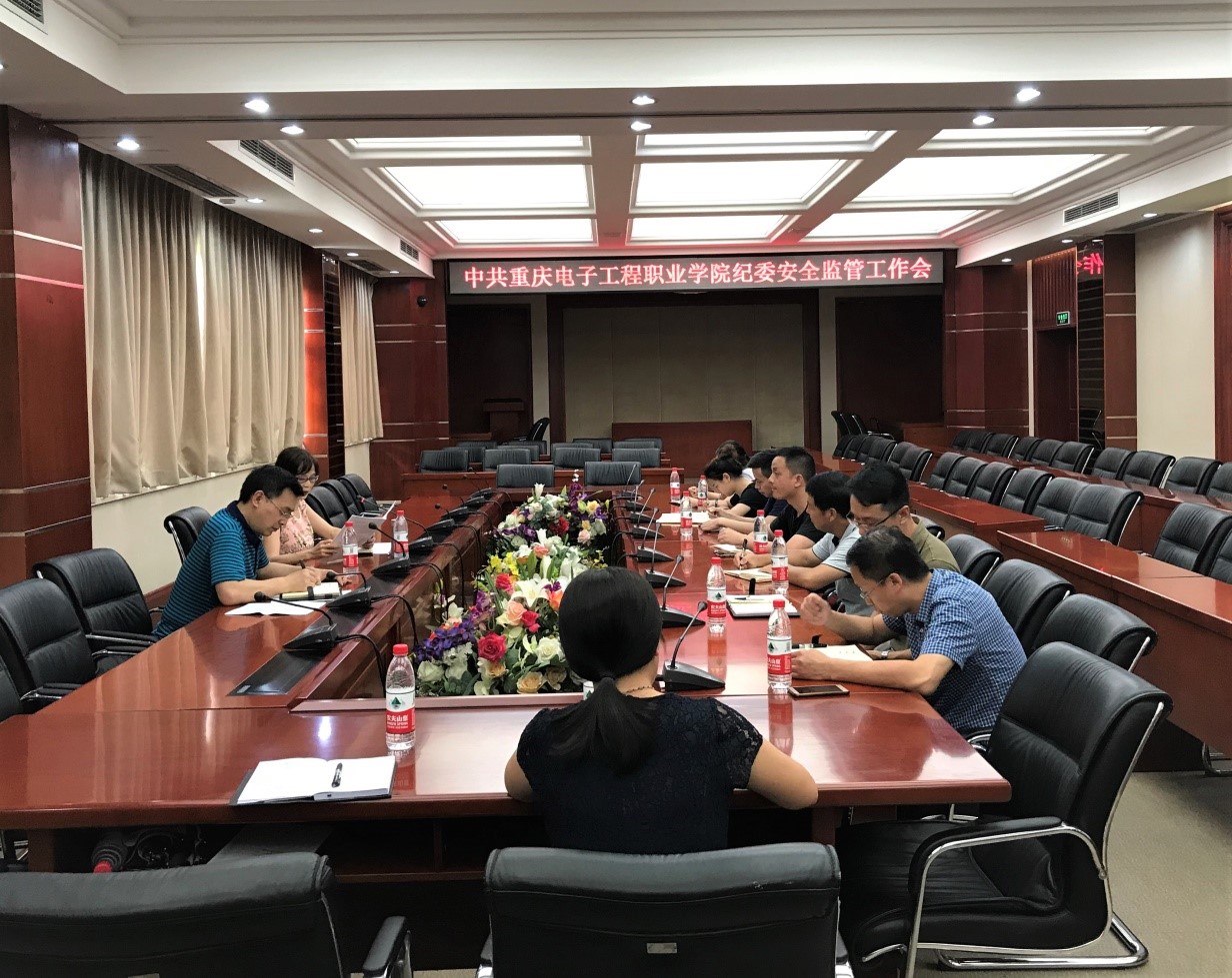 2018年7月17日下午2:30,学校纪委在博润厅组织召开了中共重庆电子工程学院纪委安全监管工作会,纪委书记陈丽、纪委委员、全体纪检监察干部参加了会议,会议由纪检监察办负责人唐艳辉同志主持。